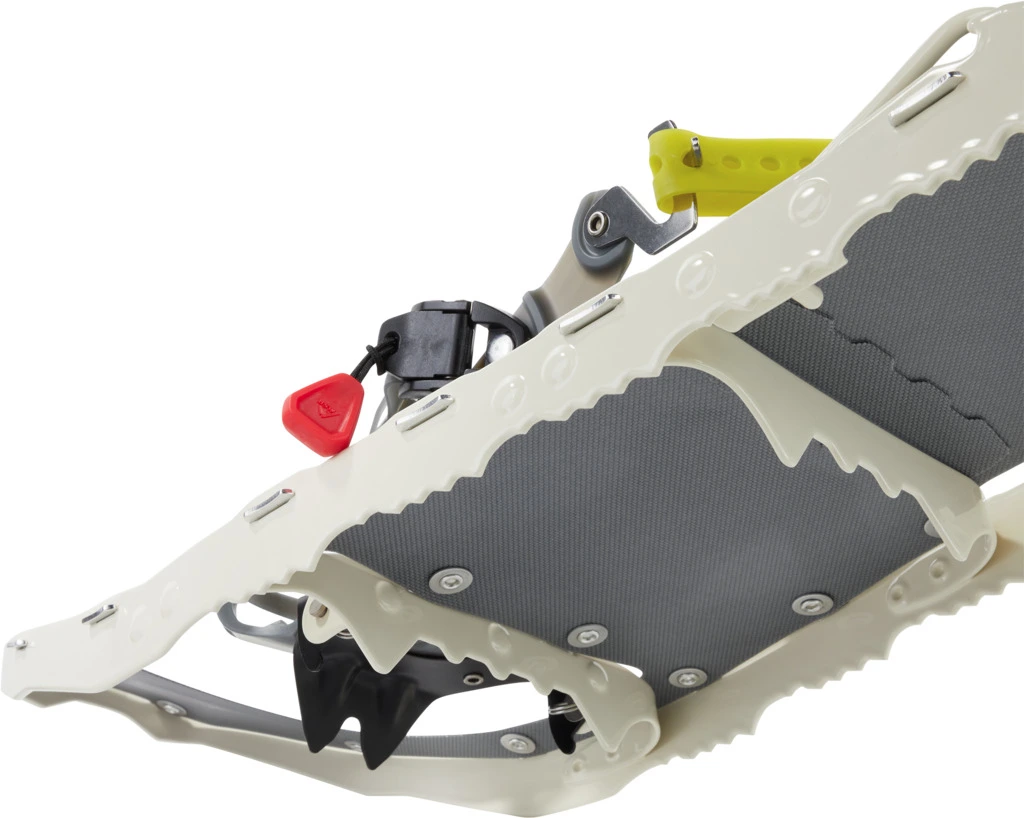 Die Lightning Explore Schneeschuhe für Damen sind leicht an den Füssen und sicher auf dem Schnee. Das beschichtete Nylon-Deck ist leise im Schnee, während 360˚-Traktionsrahmen und Stahleisen für guten Halt sorgen. Das schlankere Deck ist ideal für alle mit einem schmalen Gang. Die präzisen, komfortablen und einfach zu bedienenden Paradigm™-Bindungen sind vor Ort reparierbar und minimieren das Abdriften der Ferse für mehr Vertrauen im Schnee.